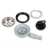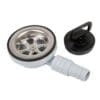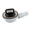 De montage is eenvoudig: je plaatst de fitting in het afvoergat met het meegeleverde rubber voor een waterdichte afsluiting. De slangaansluiting is trapsgewijs uitgevoerd, zodat zowel slangen van 20 mm als 25 mm stevig vastgezet kunnen worden met een slangenklem.
