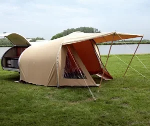 De Gobanna voortent is de ideale plek voor een gezellig ontbijt, een middagje lezen of om je duurzame kampeerspullen droog en veilig op te bergen. Dankzij het handgemaakte ontwerp en de naadloze aansluiting op de tentrail, geniet je van een tochtvrije leefruimte. Of je nu een ervaren reiziger bent of net begint met kamperen met minicaravan, deze tent verhoogt direct de luxe van je verblijf. Het is niet zomaar een caravan voortent, maar een verlengstuk van je leefomgeving in de vrije natuur.